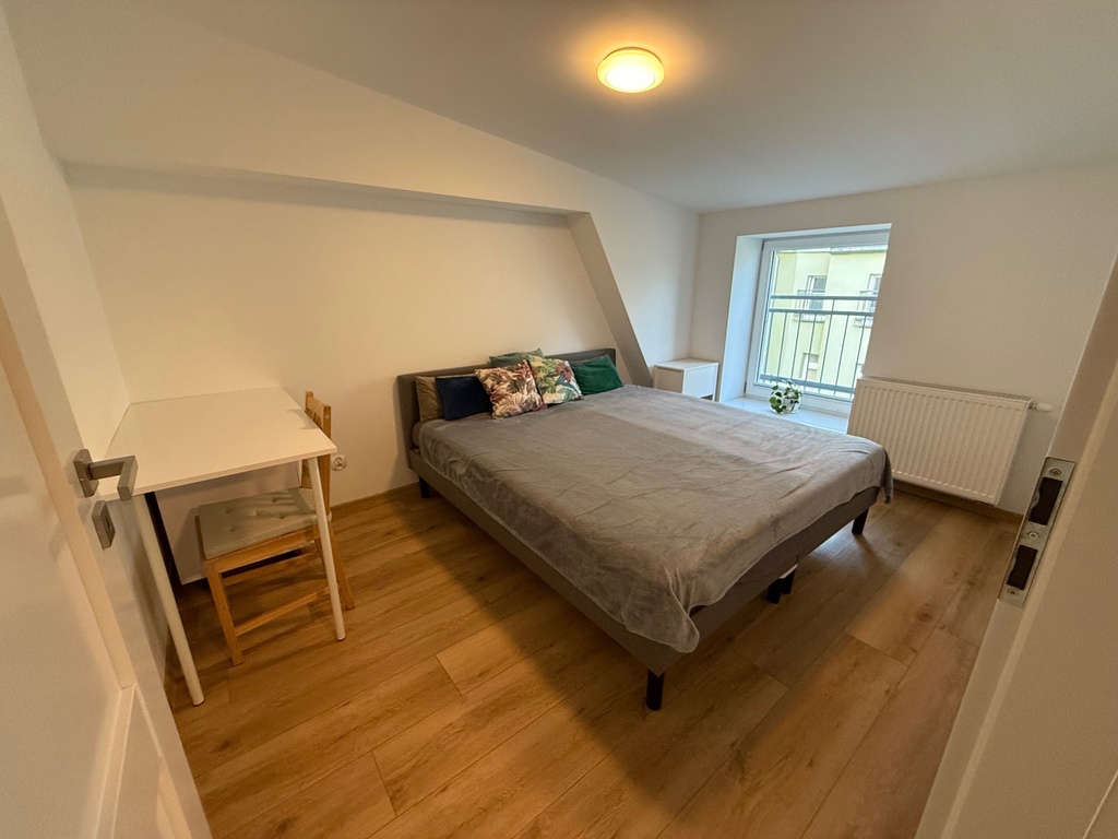 Sypialnia: wygodne łóżko, biurko z krzesłem,