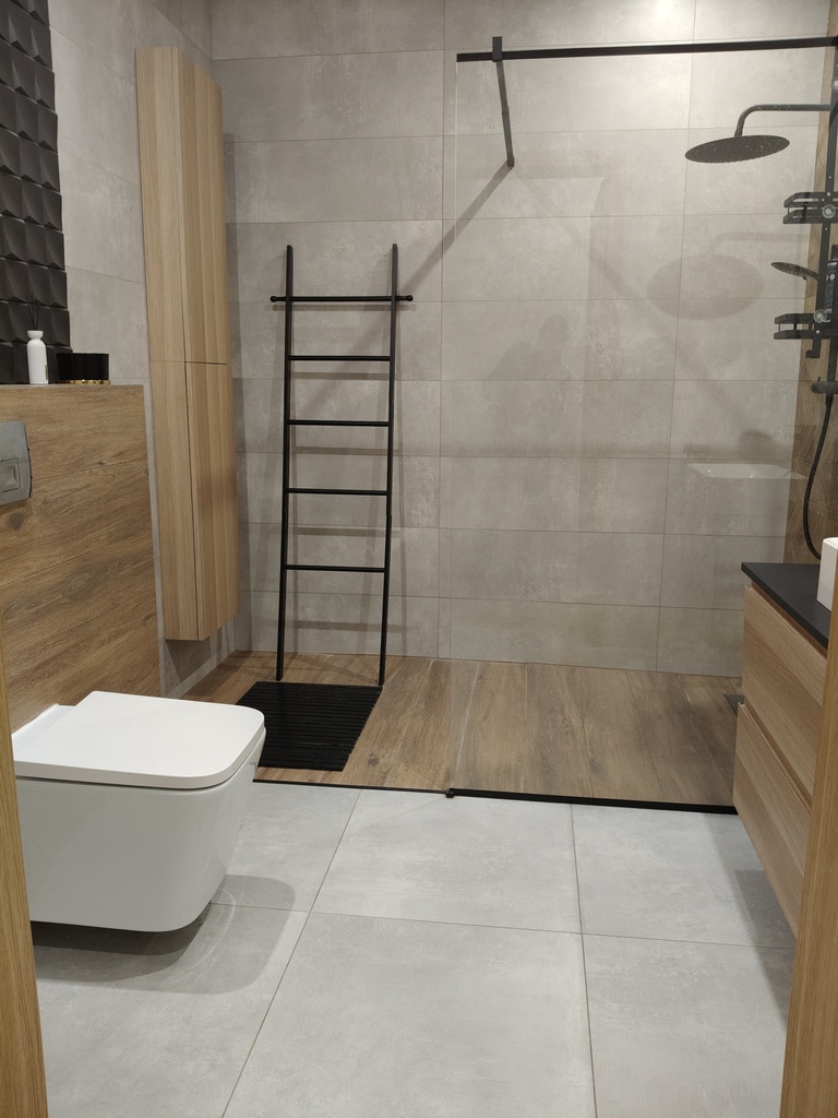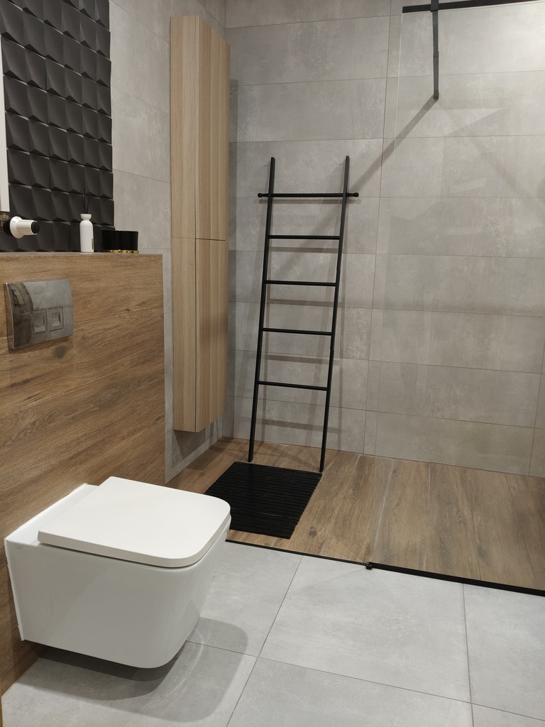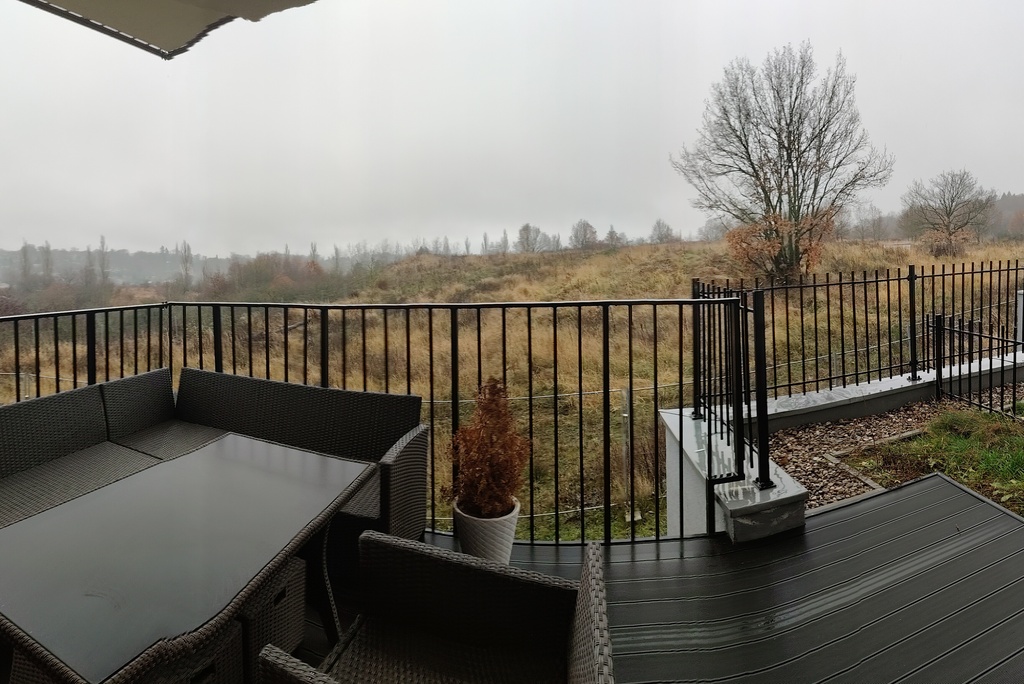 W łazience znajdą Państwo nowoczesną glazurę i terakotę oraz prysznic z odpływem liniowym, który podkreśla elegancki charakter wnętrza. Z salonu można wyjść na przestronny taras, z którego roztacza się przepiękny widok na tereny zielone, objęte ochroną Natura 2000 – idealne miejsce do relaksu na świeżym powietrzu.