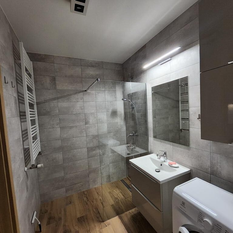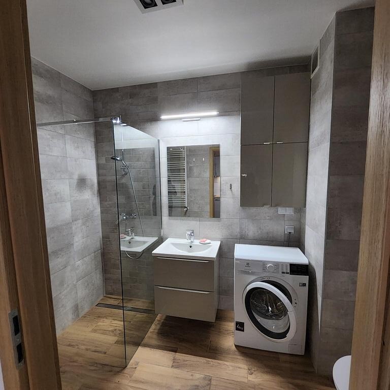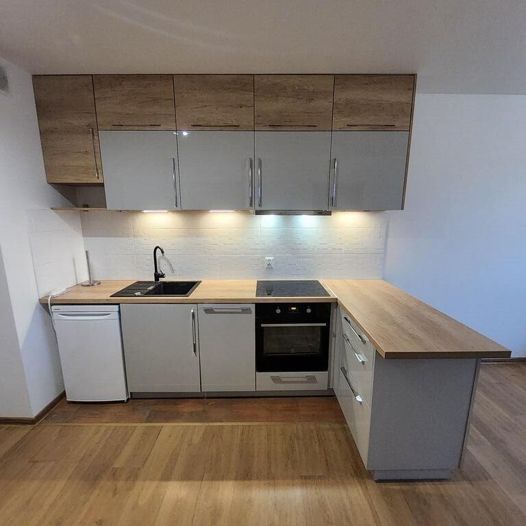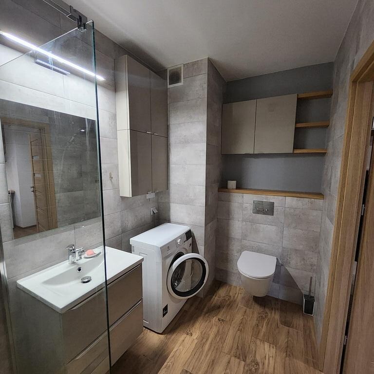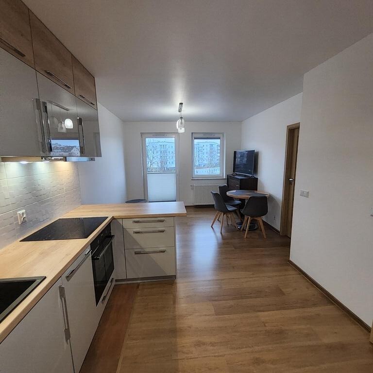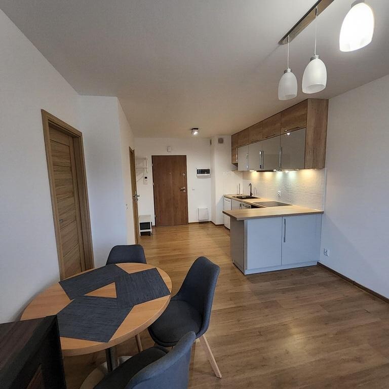 Do wynajęcia mieszkanie usytuowane na 4 piętrze 7 piętrowego bloku z 2017r. Na powierzchni ok. 26m2 znajduje się ok 19m2 salon z aneksem kuchennym, ok. 11m2 sypialnia i łazienka z wc. Z salonu jest wyjście na ustawny, kwadratowy ok 4m2 balkon. Mieszkanie jest w pełni wyposażone w sprzęt AGD ( pralka, lodówka, piekarnik, okap, zmywarka). W łazience duzy prysznic, grzejnik drabinkowy. Na podłodze panele i terakota, ściany malowane.