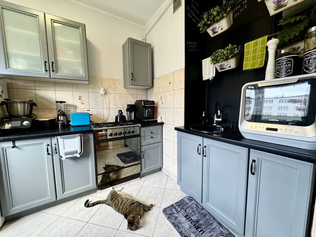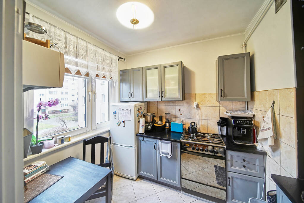 Kawalerka jest bardzo funkcjonalna i przestronna. Oddzielna kuchnia z oknem wyposażona jest w pełni sprawny sprzęt AGD, co sprawia, że przygotowywanie posiłków staje się czystą przyjemnością.