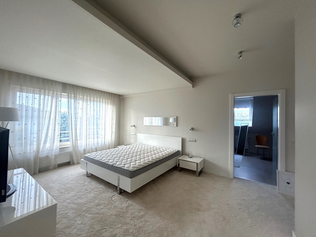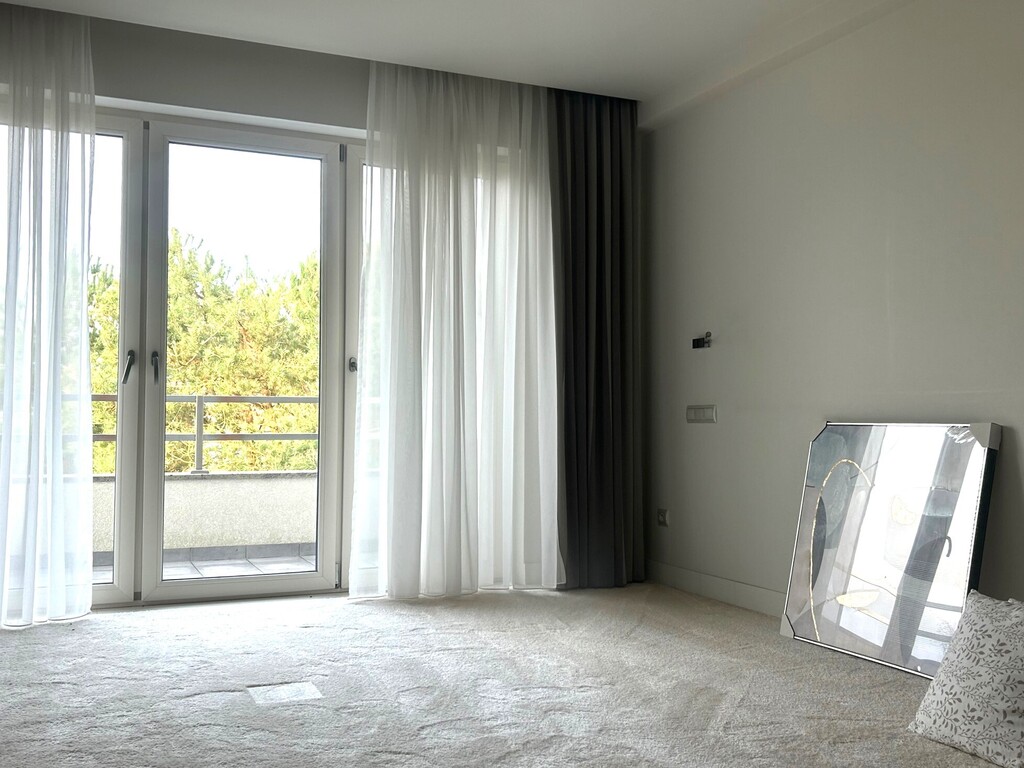 - cztery pokoje o pow. 13,50 m2; 20,80 m2; 20,10 m2; 18,70 m2 (w tym jeden z własną łazienką i garderobą - pow. garderoby 6m2 i jeden z wyjściem na balkon - widok na ogród; strona zachodnia),