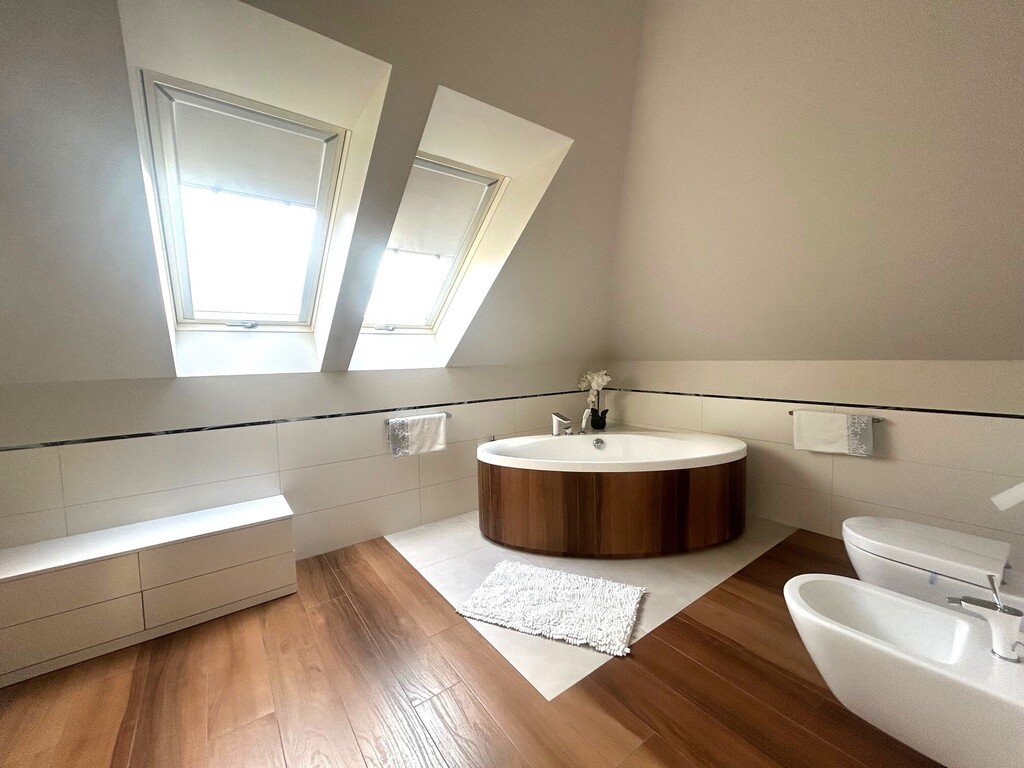 - oraz pralnia (7 m2), łazienka (toaleta bidet, kabina prysznicowa), korytarz.