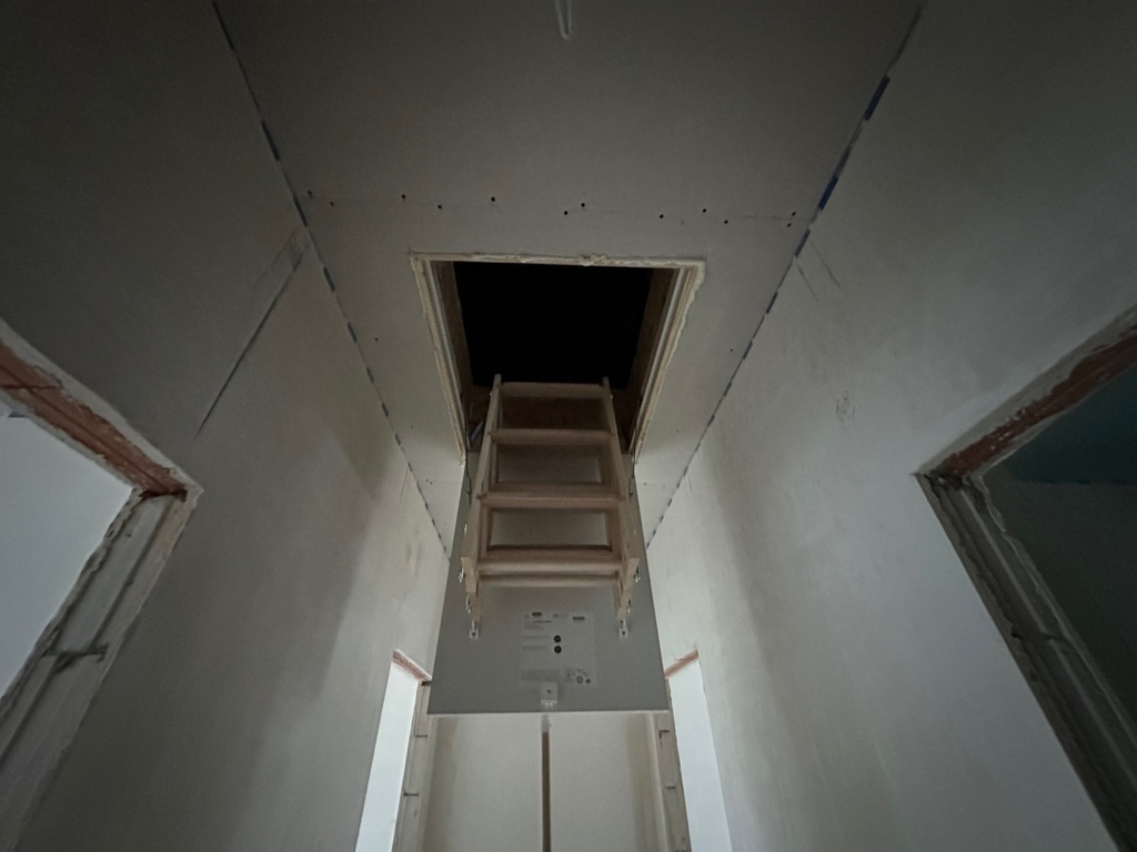 -  strop nad piętrem zabudowany płytą GK na stelażu systemowym (bez wykończenia spoin i połączeń),