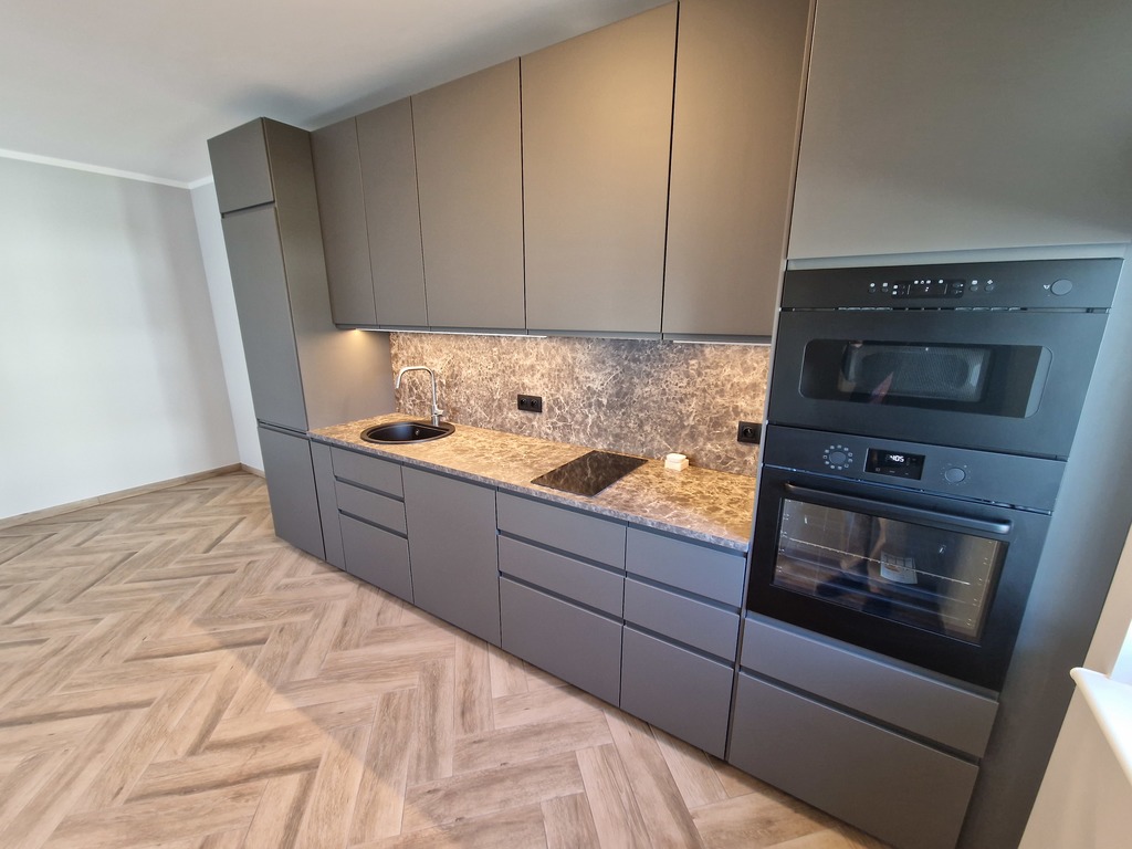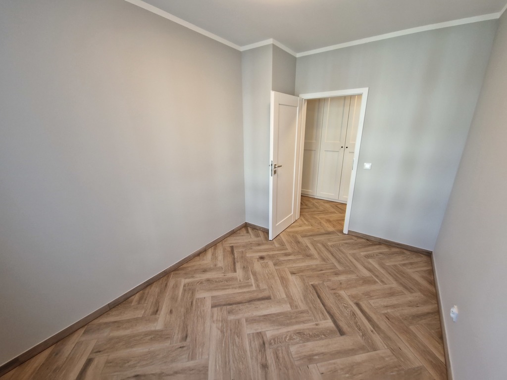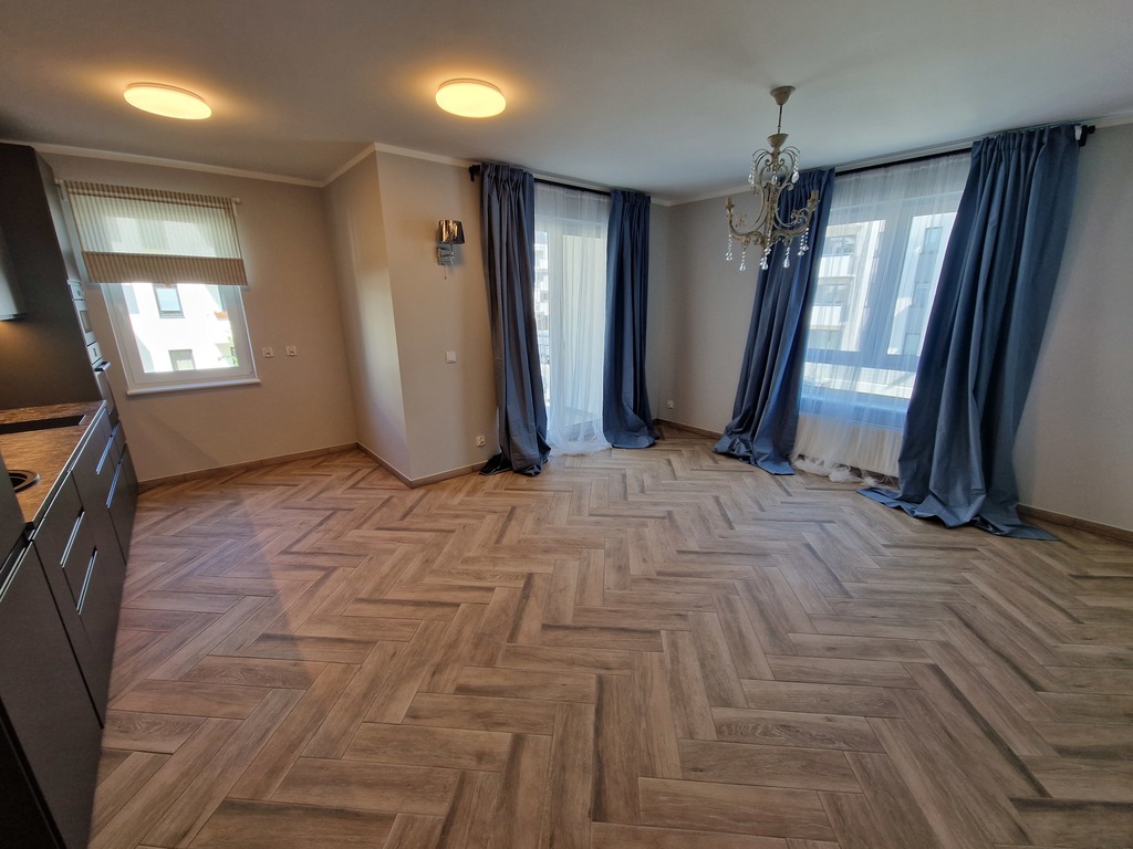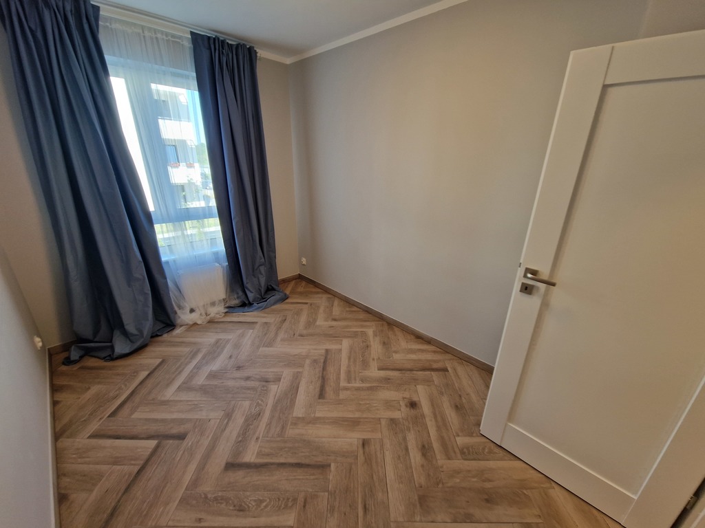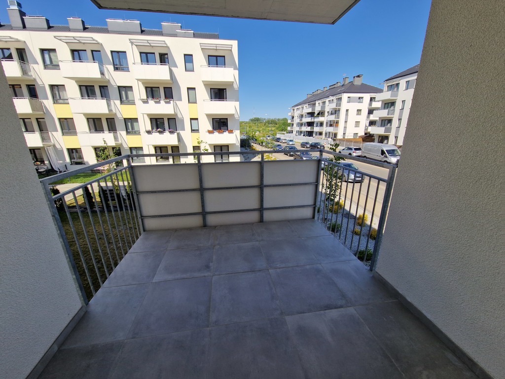 Lokal ma 58,60m2 i znajduje się na 1 piętrze. Okna wychodzą na stronę południowo zachodnią dzięki czemu mieszkanie jest bardzo słoneczne. Na powierzchnię mieszkania składa się duży salon z aneksem kuchennym (28m2) z nowoczesną kuchnią wyposażoną we wszystkie AGD (piekarnik, zmywarka, mikrofalówka lodówka - wszystko zabudowane). Z salonu mamy wyjście na bardzo duży 10m2 balkon. Sypialnie mają 9,20 i 10,30m2. Łazienka w nowoczesnej kolorystyce z kabiną prysznicową, wc i umywalką oraz miejscem na pralkę o powierzchni 4,3 m2. Wszystkie pomieszczenia mają na podłodze drewnopodobne płytki dzięki czemu są bardzo łatwe do utrzymania czystości. Pokoje nieumeblowane z zamontowanym oświetleniem i karniszami i zasłonami/firanami.