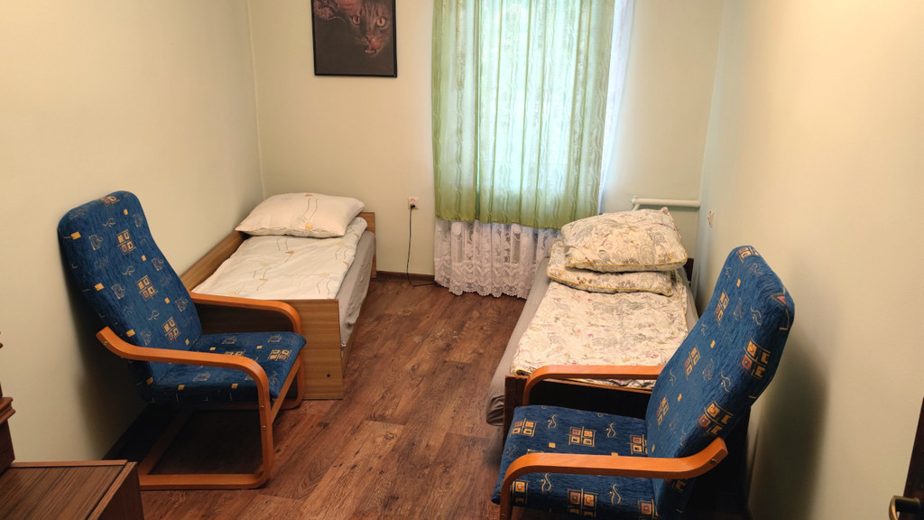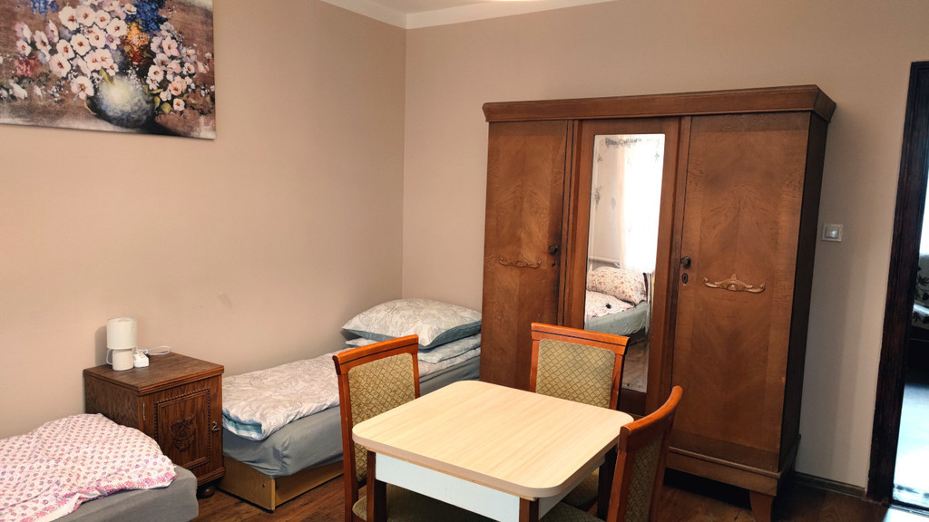 Pokoje w pełni wyposażane - łóżka (z materacami, kołdry, poduszki, pościel), szafy, stoliki, stoły, krzesła.