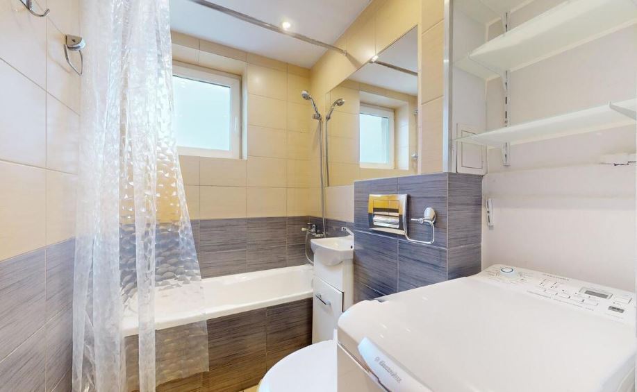 - łazienki z wanną wyposażonej w pralkę