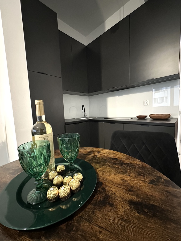 - jeden pokój, łazienka z prysznicem, aneks kuchenny