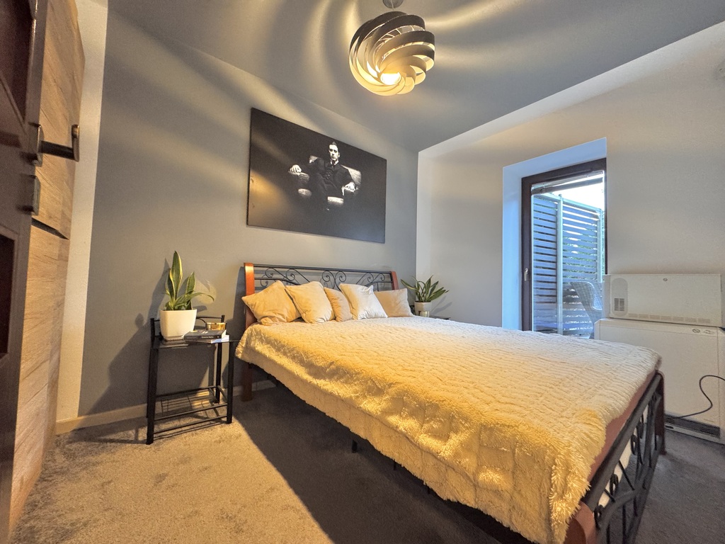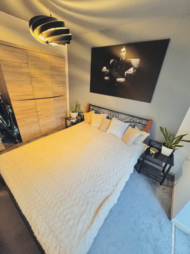 - sypialnia (ok. 10m2) z łóżkiem małżeńskim oraz szafą,