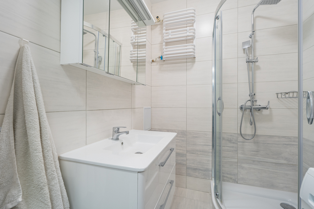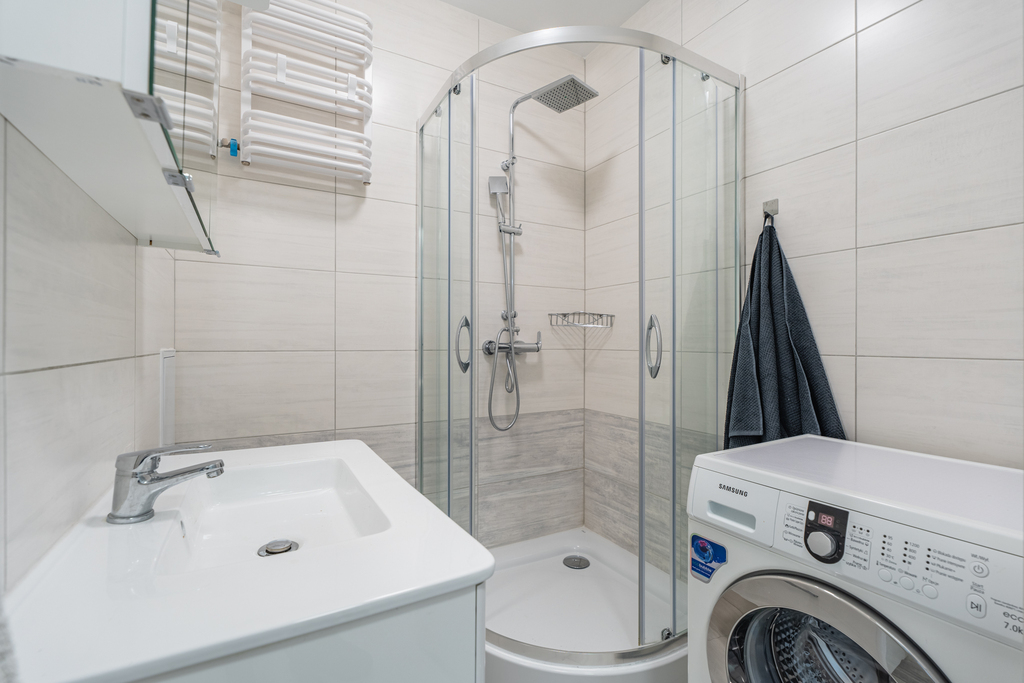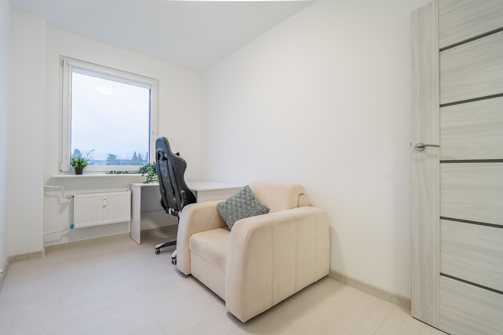 Mieszkanie zawiera 3 pokoje: salon, sypialnię oraz pokój biurowy. Kuchnia wyposażona we wszelkie niezbędne sprzęty: kuchenka gazowa, piekarnik, okap, zmywarka, lodówko-zamrażarka, zlewozmywak, meble w zabudowie z dużą ilością miejsca do przechowywania rzeczy. W nieruchomości mamy łazienkę z WC oraz prysznicem i osobną toaletę. W przedpokoju znajduje się dodatkowo duża szafa typu komandor.