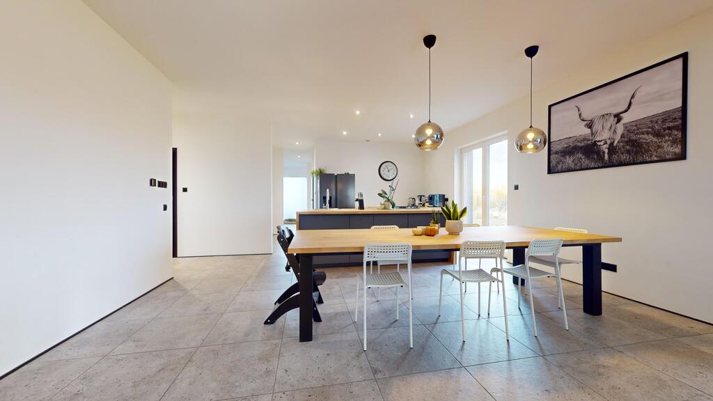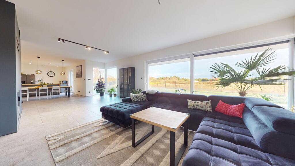 - salon z aneksem kuchennym, jadalnią z wyjściem na taras