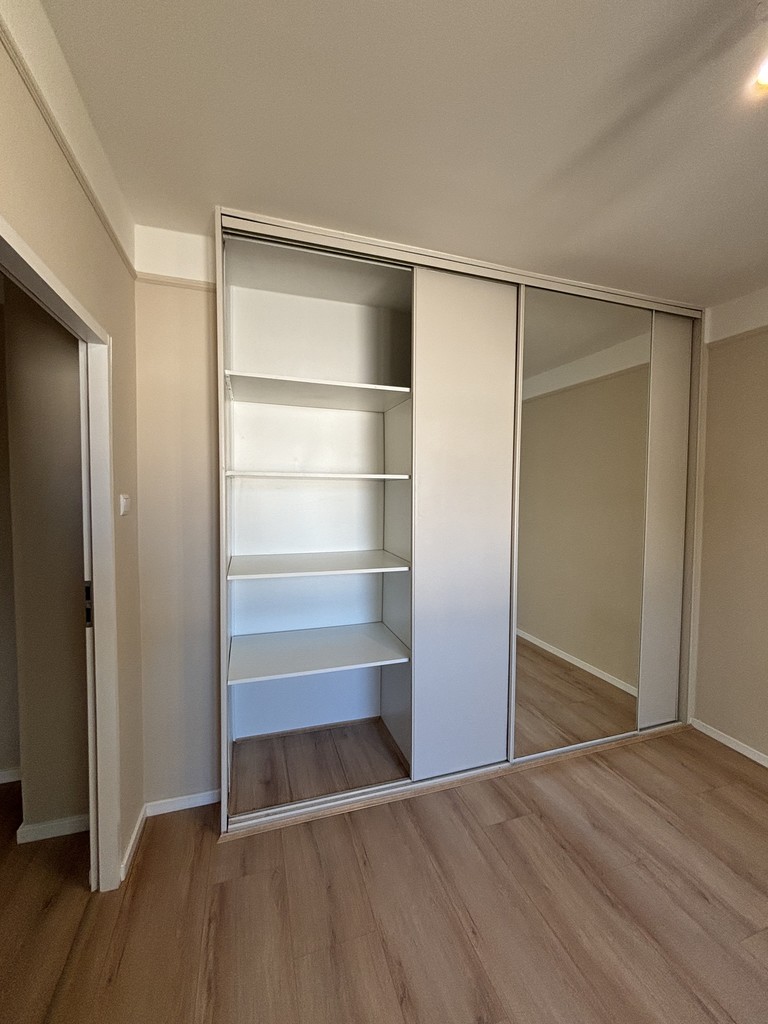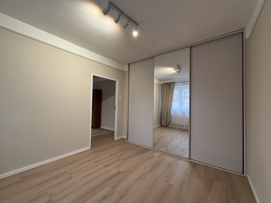 Sypialnia: Wyposażona w dużą szafę z lustrem, co nie tylko umożliwia wygodne przechowywanie, ale również dodaje przestronności. Przytulna atmosfera sprzyja relaksowi po długim dniu.