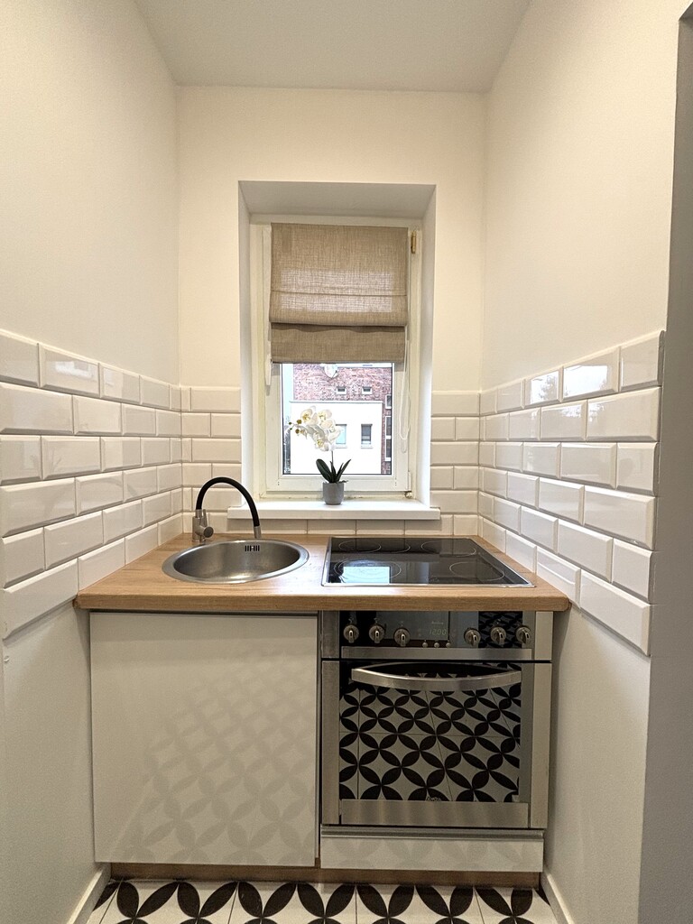 Kuchnia: Umeblowana na wymiar, z nowoczesnym wyposażeniem, w tym płytą elektryczną, piekarnikiem oraz lodówką. Idealna do przygotowywania codziennych posiłków i eksperymentowania w kuchni.