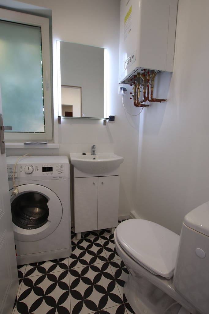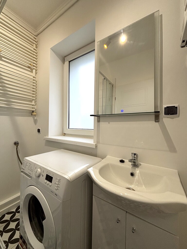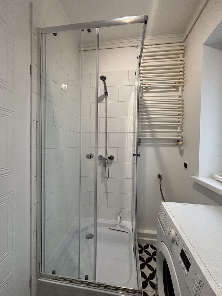 Łazienka: Estetycznie urządzona, prysznic, WC, umywalka oraz pralka, doświetlona oknem co zapewnia komfort i wygodę na co dzień.