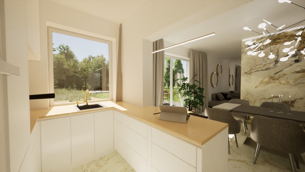 W ofercie sprzedaż dom w zabudowie bliźniaczej w stanie deweloperskim usytuowany wśród nowych domów w kameralnej miejscowości położonej około 9 km od Goleniowa – na pograniczu Żółwiej Błoci oraz Białunia.