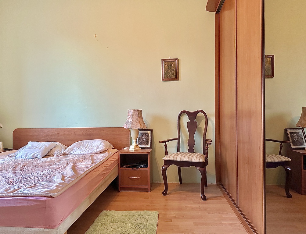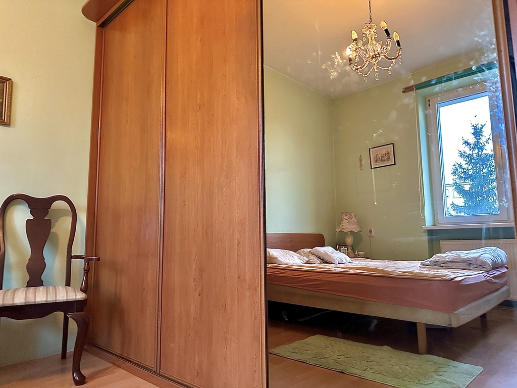 • Sypialnia: Z oknem, duża szafa w zabudowie (Komandor).