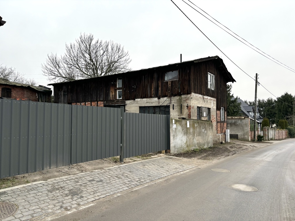 Media w budynku, prąd, bieżąca woda, teren zabudowany częściowo bramą.