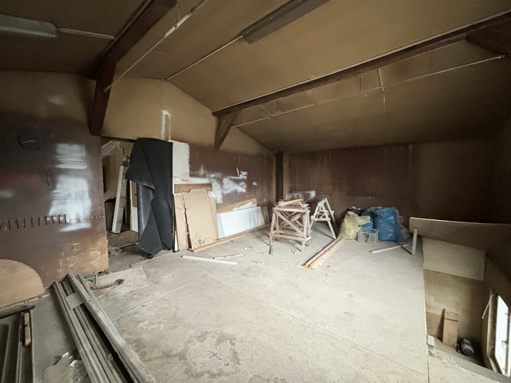 W bryle budynku duży garaż z kanałem, od strony podwórka dwa garaże przy budynku.