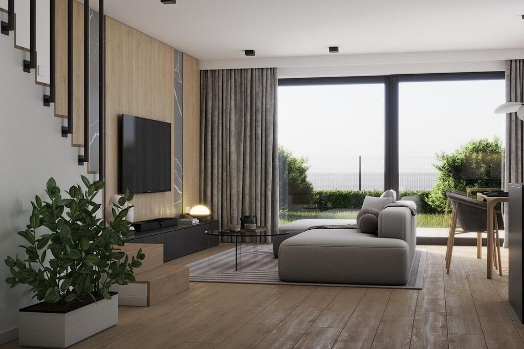 Parter: Na parterze przewidziano przestronny salon z aneksem kuchennym, który tworzy otwartą, rodzinną przestrzeń. Duże okna w salonie zapewnią doskonałe doświetlenie, a funkcjonalny układ pomieszczeń da poczucie przestronności. Jest to idealne miejsce do wspólnego spędzania czasu, spotkań z rodziną i przyjaciółmi.