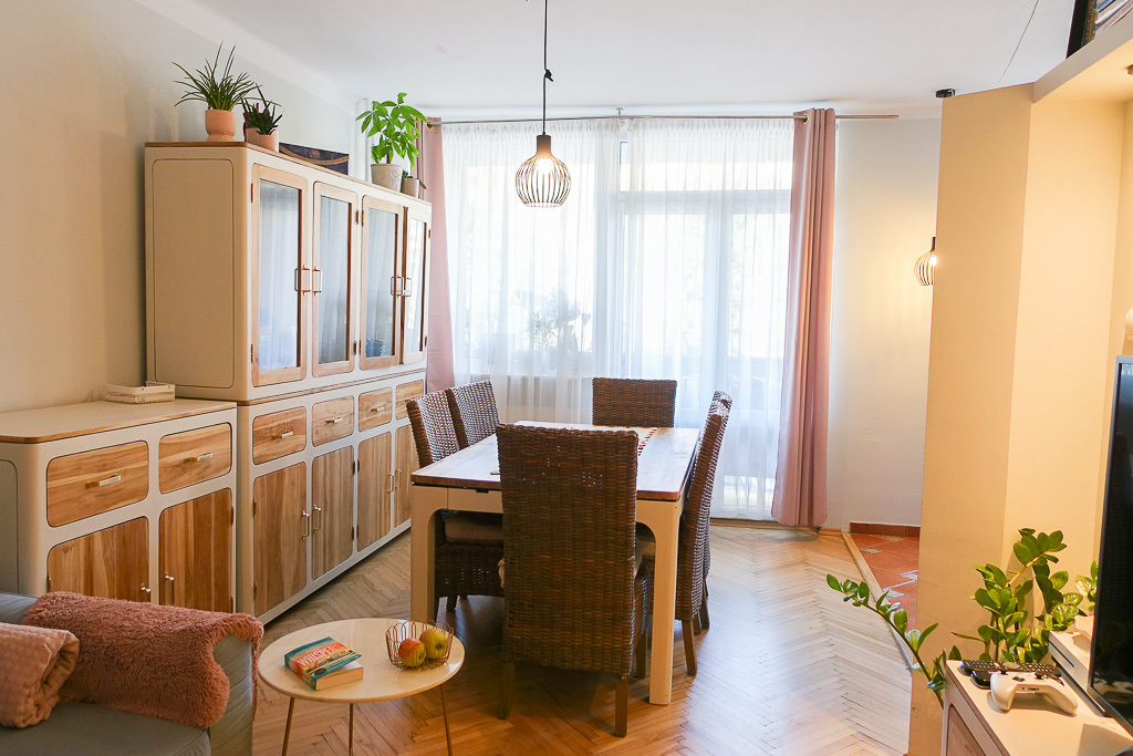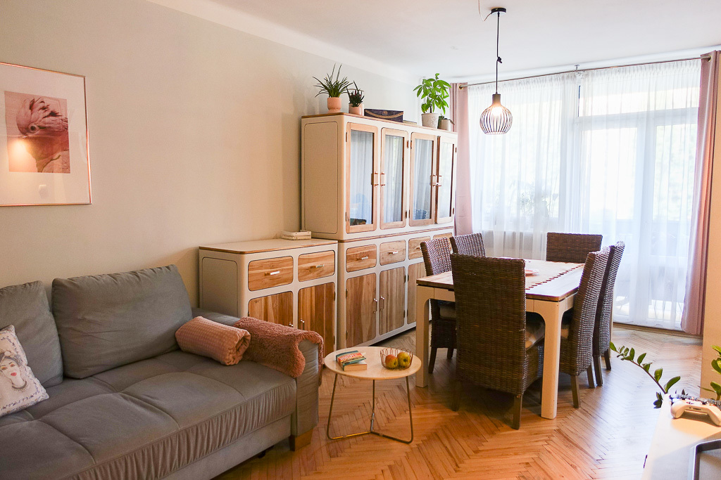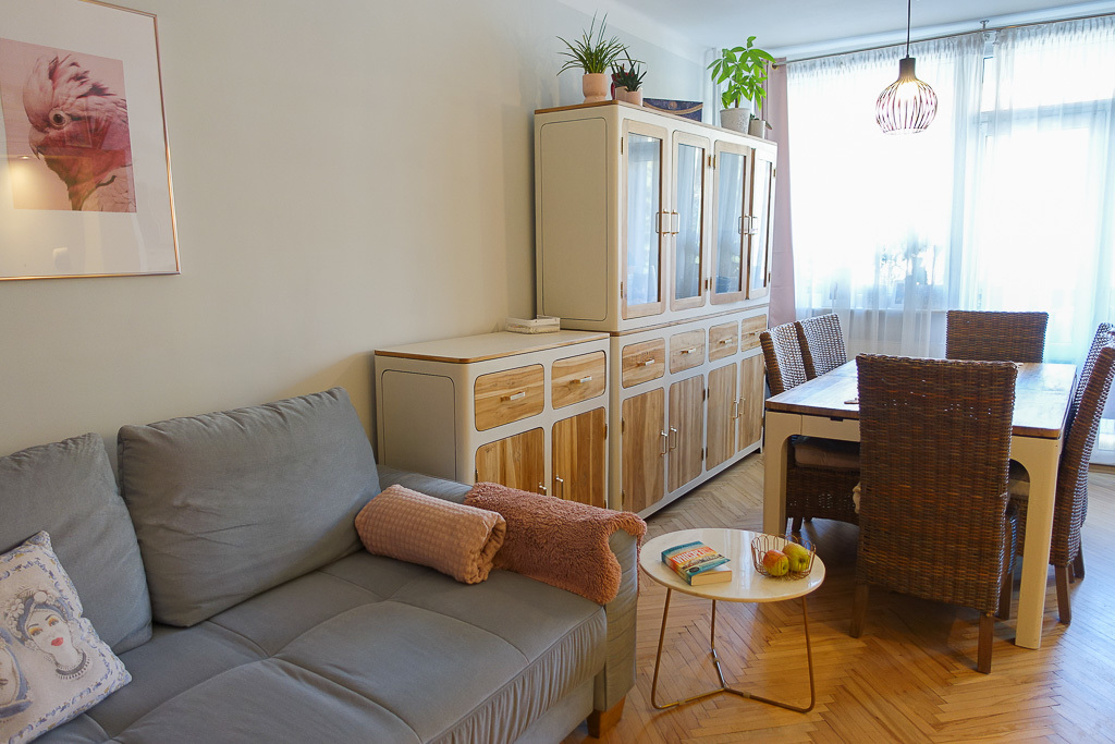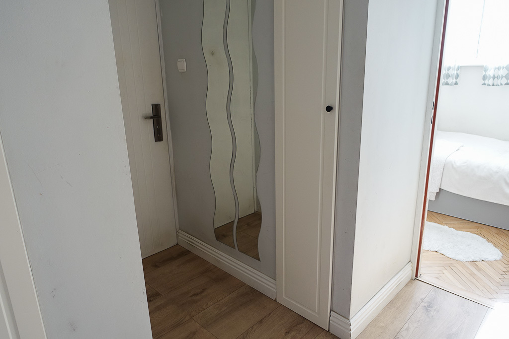 Near Poseidon and Brama Portowa, in the heart of the city 3-room private apartment 60.16 m2 with a balcony, 1st floor of a brick building built in the 60s. In the yard, parking only for residents, closed with a barrier. APARTMENT DESCRIPTION: room with an area of 21.6 m2 with access to a 3 m2 balcony on the west side with a view of one of the oldest monuments of the city, including Brama Portowa. This room is connected to an open kitchen with an area of 9.6 m2. In the kitchen, furniture with household appliances (gas stove, 45 cm wide dishwasher, refrigerator, hood, sink). Two rooms on the side of a quiet yard provided with parking and greenery from Tkacka Street. Areas of rooms 13 m2 and 6 m2, these rooms can be easily connected. Bathroom 3.1 m2 connected to the toilet, in it a shower cabin, sink, washing machine. From the 6 m2 hallway entrance to the 1 m2 wardrobe. In the rooms on the floor nicely maintained parquet in the kitchen and bathroom terracotta. In the bathroom tiles on the walls. New entrance doors, all installations were replaced including the electric one, which is in copper. Walls in a smooth finish painted white. Hot water and heating from the city network. Rent for 3 people is PLN 900. BUILDING DESCRIPTION: brick building from the 60s, [located near the BRAMA PORTOWA transport hub from which you can get to every district of Szczecin, close to GALERIA KASKADA, shops, banks, pharmacies, the POSEJDON office building and hotels, restaurants. Near cinemas, theaters, philharmonic, Żeromski Park, Wały Chrobrego. Good access to every Park in Szczecin, Lasek Arkoński and to Lake Głębokie. A great apartment for people who value walking access to all the attractions provided by an apartment in the city center or for a short and long-term rental investment.
