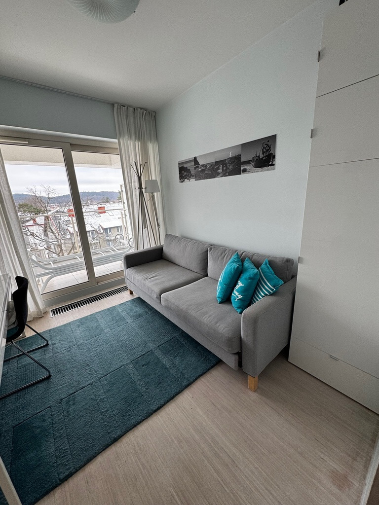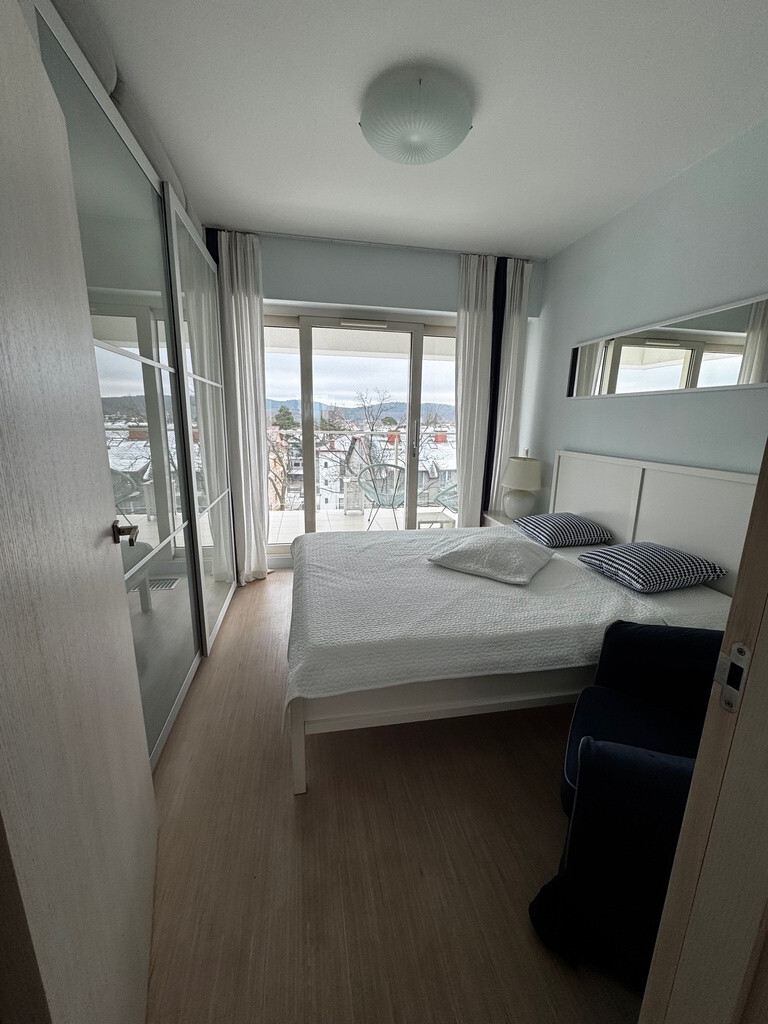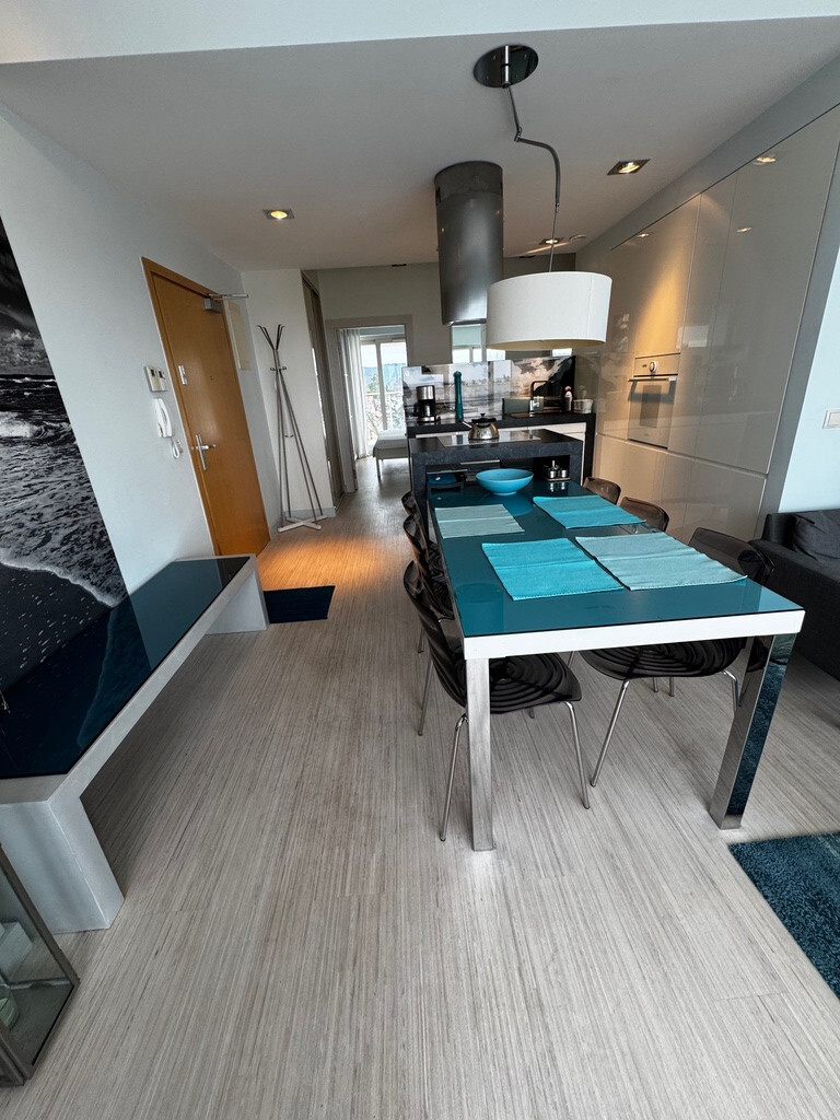 Położony na ostatnim (czwartym) piętrze nowoczesnego budynku, apartament oferuje spektakularne widoki zarówno na morze (balkon północno-zachodni), jak i na panoramę malowniczego miasta (loggia południowo-wschodnia).