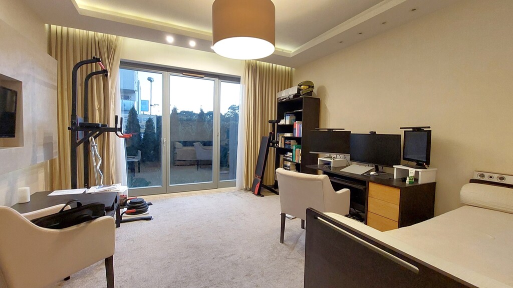 Mieszkanie jest bardzo jasne i słoneczne. Zarówno w salonie jak i w sypialni okna są do samej podłogi. W oknach zamontowane automatyczne rolety antywłamaniowe.