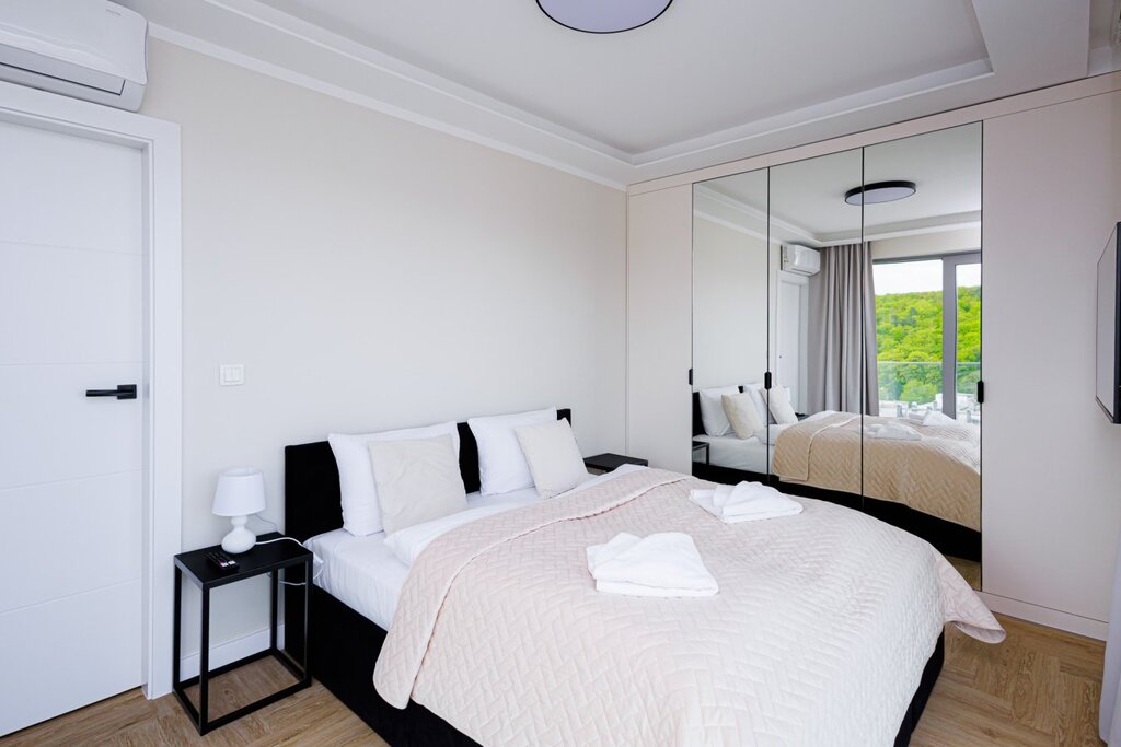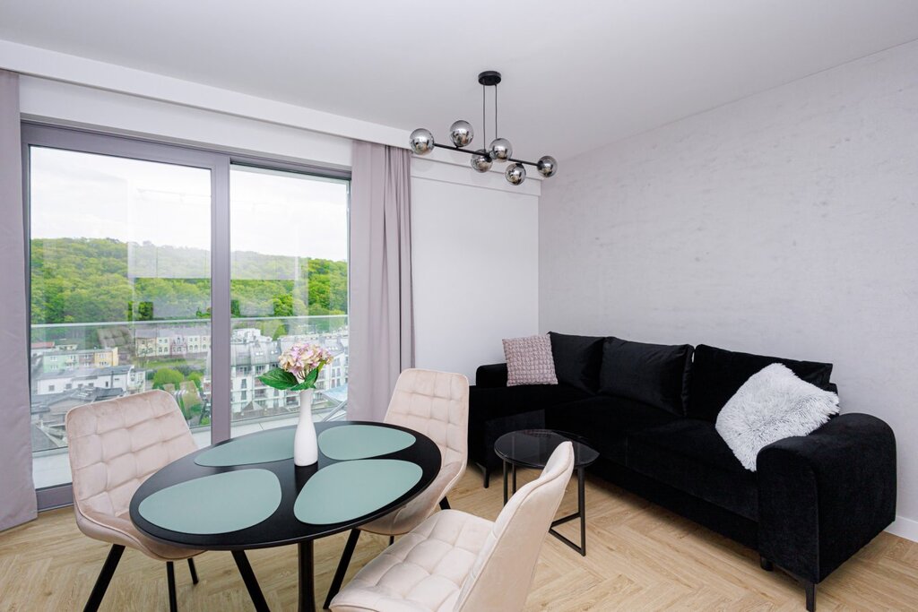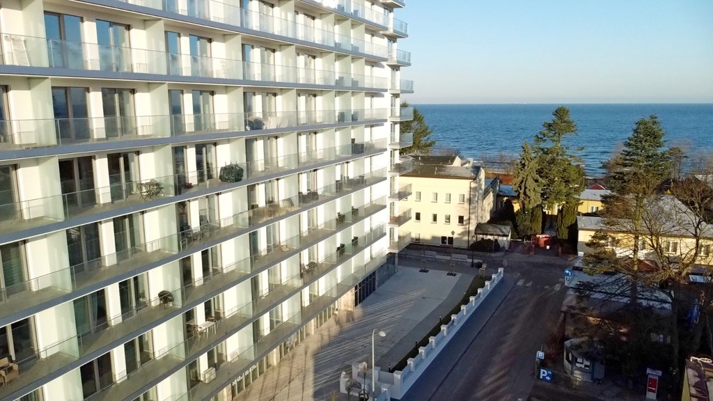 Apartament w Międzyzdrojach z widokiem bocznym na morze, zaledwie 100m od plaży. Apartament oddany do użytku w 2020r. Apartamentowiec, w którym się znajduje, to nowoczesny budynek bez barier, wyposażony w dwie windy przystosowane dla osób niepełnosprawnych, portiernię, halę garażową oraz lokale handlowo-usługowe w parterze.