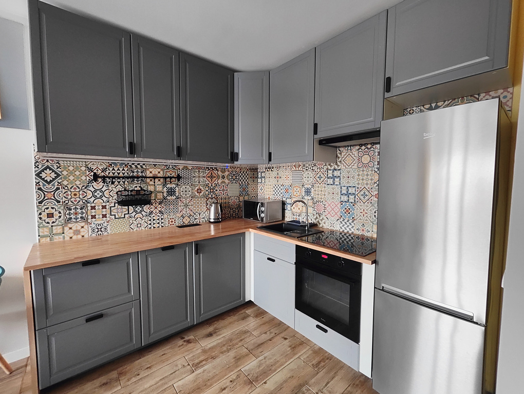 - aneks kuchenny w pełni wyposażony (lodówka z zamrażarką, zmywarka, piekarnik, płyta grzewcza elektryczna, zlewozmywak, okap, oraz meble w zabudowie kuchennej na wymiar),