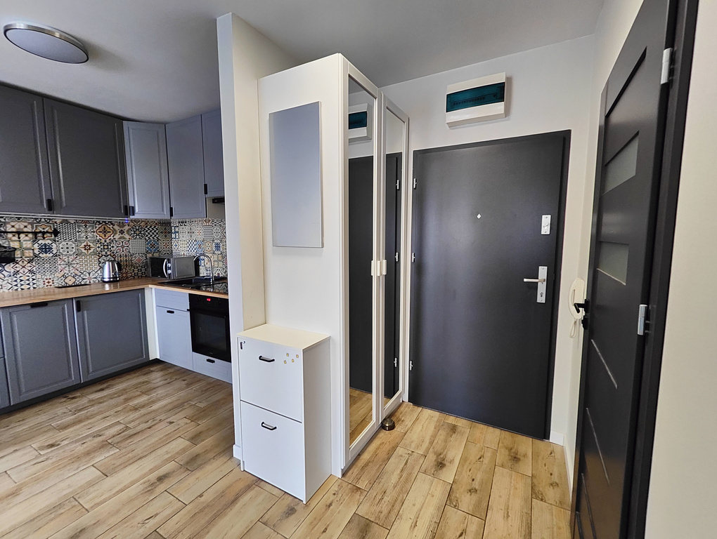 Mieszkanie kilka lat temu zostało wykończone bardzo dobrej klasy materiałami, dzięki czemu mimo upływu czasu wciąż jest w świetnej kondycji i w nadaje się od razu do zamieszkania lub do wynajęcia. Nieruchomość znajduje się na 3 piętrze 4 piętrowego budynku apartamentowego z windą, a jego powierzchnia wynosi 40,87m2 i w skład tej powierzchni wchodzą: