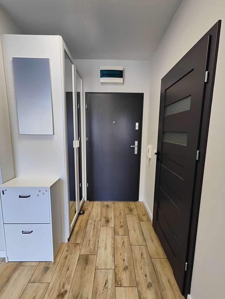 - przedpokój z szafą dwuskrzydłową z lustrem oraz szafką na buty.