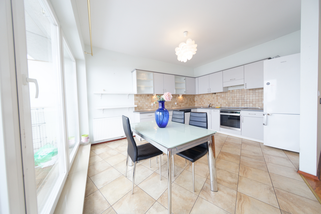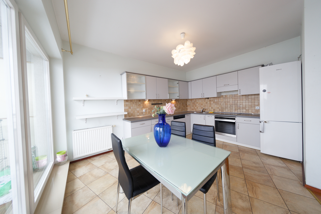 Do wynajęcia przestronny i komfortowy dwupoziomowy apartament o powierzchni użytkowej 130 m² (powierzchnia całkowita 165 m²), wybudowany przez renomowaną firmę Modehpolmo. Apartament znajduje się na ostatnim, 4. piętrze budynku, z prywatną windą, która prowadzi bezpośrednio do mieszkania, zapewniając pełną prywatność i wygodę.