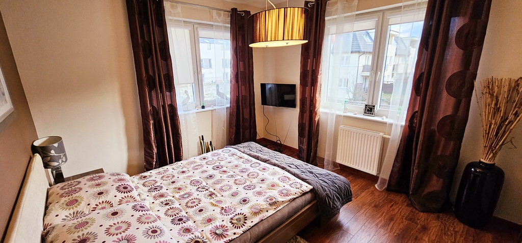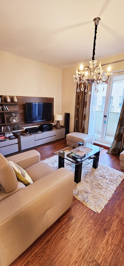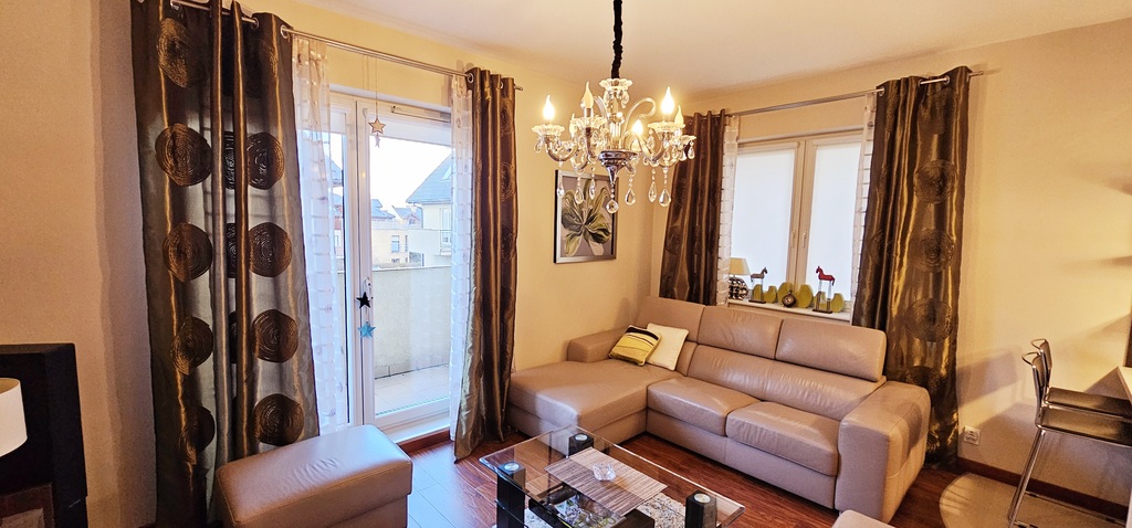 Na powierzchnię 66,38 m2 składa się salon z otwartą, widną kuchnią, 2 sypialnie, łazienka oraz przedpokój. Standard mieszkania - bardzo dobry. Jednym z atutów jest przestronny balkon. W cenie mieszkania pozostaje niemal pełne umeblowanie oraz wyposażenie .