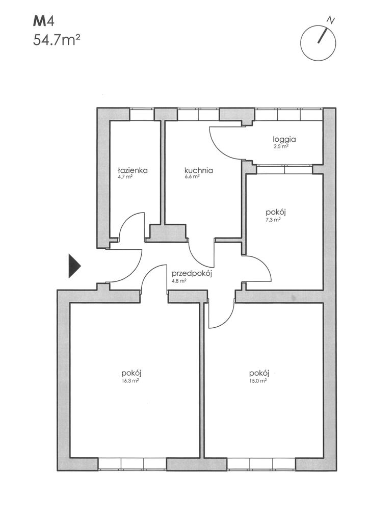 Mieszkanie położone na wysokim parterze, ma powierzchnię 54,75 m2 w skład której wchodzą: