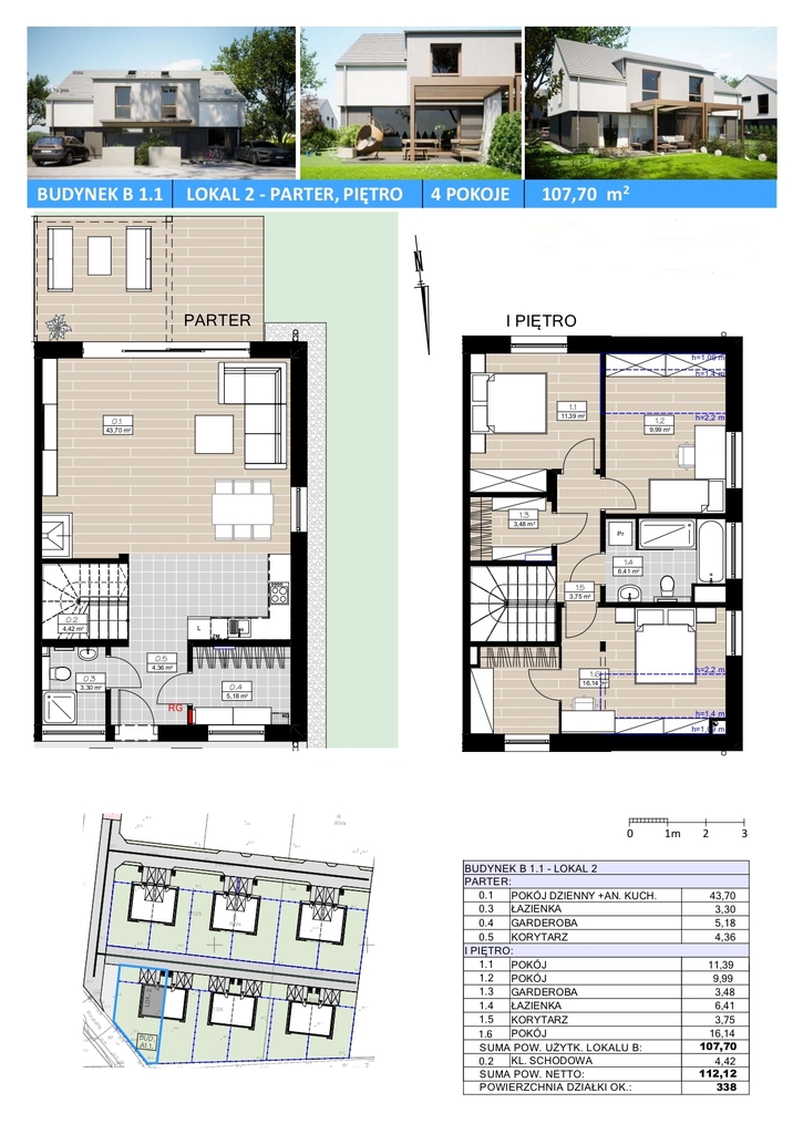 Oferuję na sprzedaż ładny, funkcjonalny bliźniak w stanie deweloperskim na kameralnym osiedlu w Dobrej, o powierzchni 112,14 położony na działce o powierzchni 338. Dojazd do osiedla jest drogą z kostki brukowej. Są z podjazdami i ogrodzeniem. Budynek jest zbudowany w standardzie deweloperskim, z rekuperacją, z możliwością montażu instalacji hybrydowej oraz z podwójną ścianą wewnętrzną zapewniającą komfort. Na parterze znajduje się przestronny salon z aneksem kuchennym o powierzchni (43,70), łazienka (3,30), garderoba (5,18), korytarz (4,36). Na piętrze znajdują się trzy pokoje ( 11,39, 9,99, 14,99), garderoba ( 3,48), łazienka (6,41), korytarz ( 4,92), klatka schodowa (4,42).W wyposażeniu piec gazowy z możliwością zamiany na pompę ciepła za dopłatą. brama garażowa ocieplana z napędem elektrycznym. Przygotowane są również puszki pod montaż rolet antywłamaniowych. Segment posiada 2 miejsca parkingowe. Serdecznie zapraszam na prezentację.