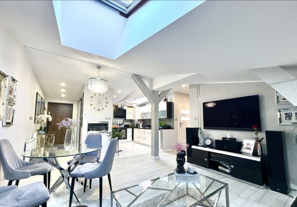 • Przestronność: Dzięki powierzchni użytkowej i dodatkowej przestrzeni pod skosami, mieszkanie jest niezwykle funkcjonalne.