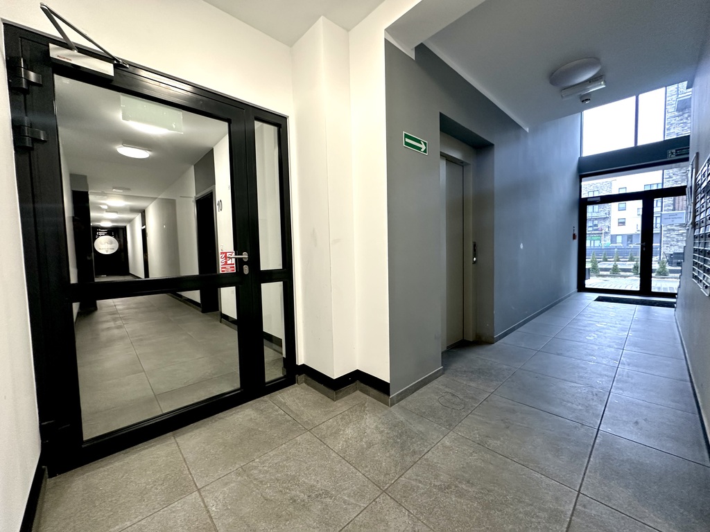 Budynek III piętrowy z nowoczesną elewacją oraz przestronnymi klatkami schodowymi wykonanymi w wysokim standardzie.