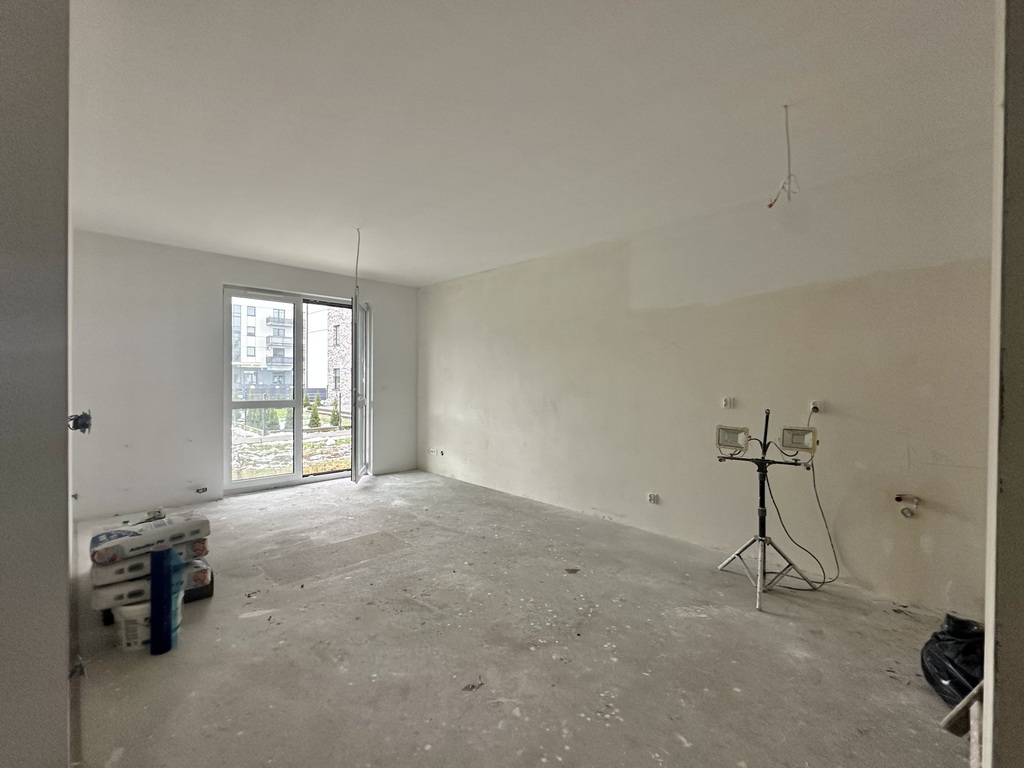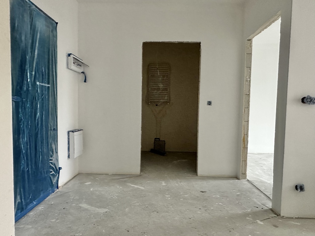 Ściany zostały wyszpachlowane gładzią, w oknach (PCV trzyszybowe) zamontowane rolety elektryczne.