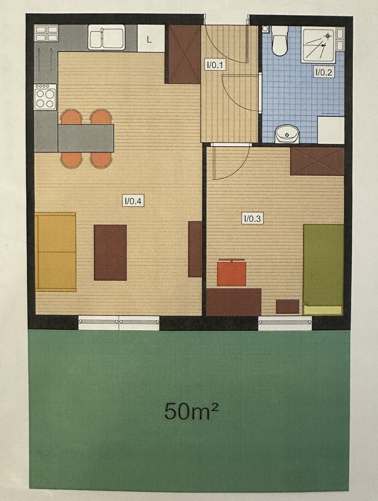Mieszkanie bez barier architektonicznych, z ogródkiem o powierzchni 50 m2 od strony południowo - zachodniej.