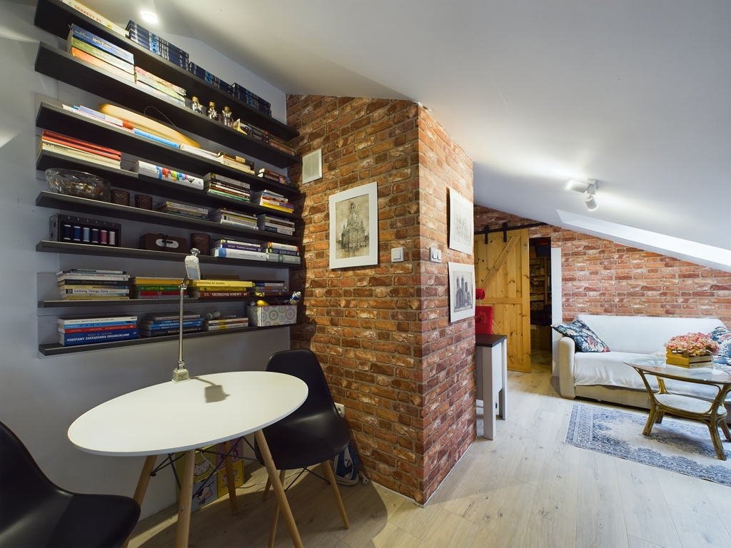 - Antresola, na której znajduje się otwarta przestrzeń oraz garderobę,