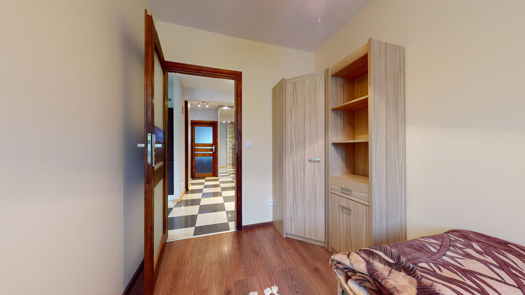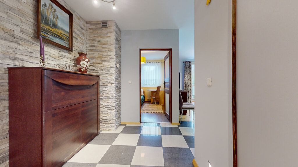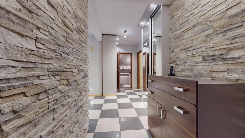- przestronny korytarz z dwiema dużymi szafami w zabudowie.