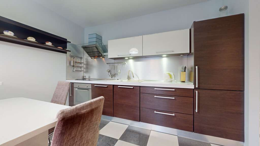 - kuchnia otwarta na salon z zabudową oraz wyposażeniem, oddzielona od salonu barkiem pełniącym funkcję jadalni,