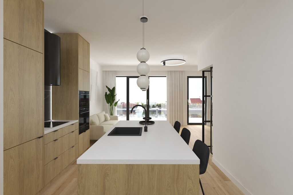 Mieszkanie posiada duży balkon od strony rzeki z widokiem na wodę i miasto.