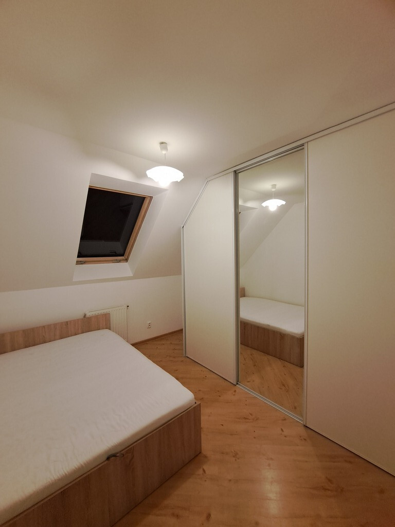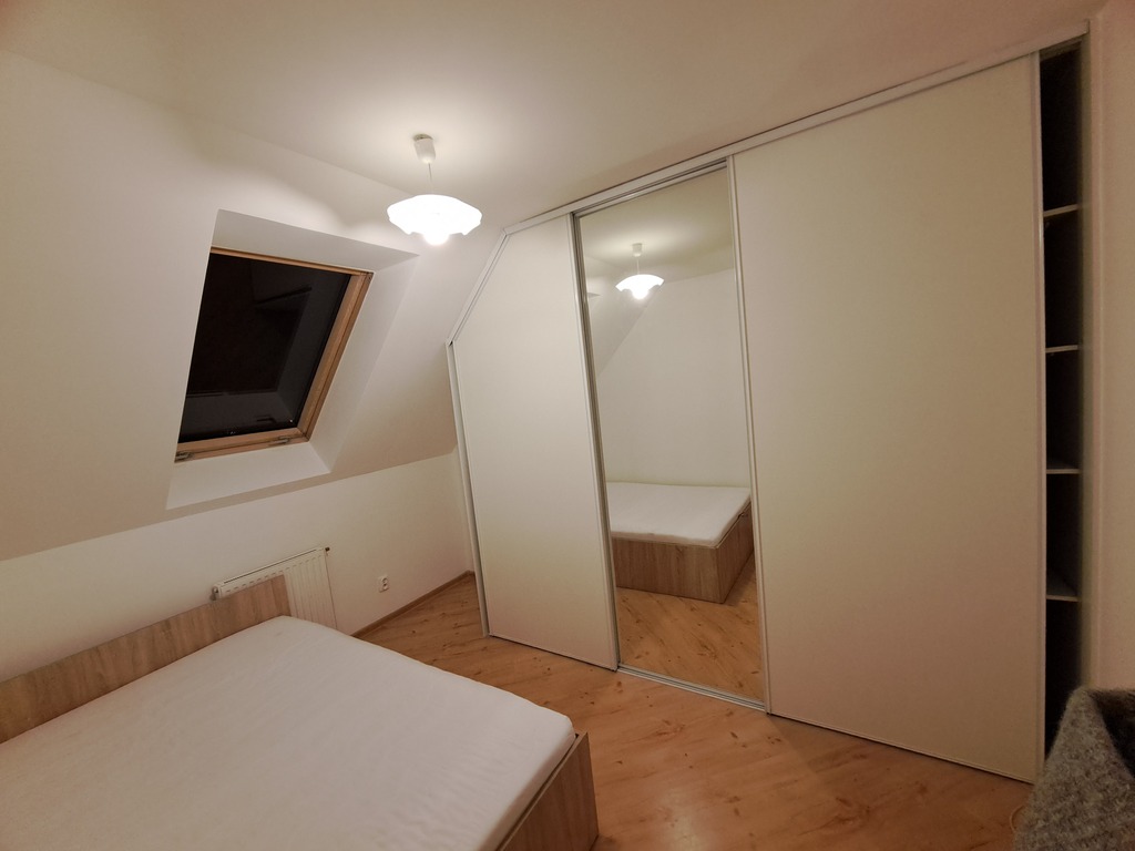 Mieszkanie jest w pełni umeblowane. Składa się z trzech nieprzechodnich rozkładowych pokoi (z największego z nich wyjście na duży balkon). W sypialni znajduje się łóżko małżeńskie z wygodnym materacem oraz duża trzydrzwiowa szafa w zabudowie stałej. W mniejszym pokoju również jest szafa w zabudowie. Kuchnia jest kompletnie umeblowana i wyposażona w sprzęt AGD. W łazience znajduje się zarówno wanna, jak i prysznic.