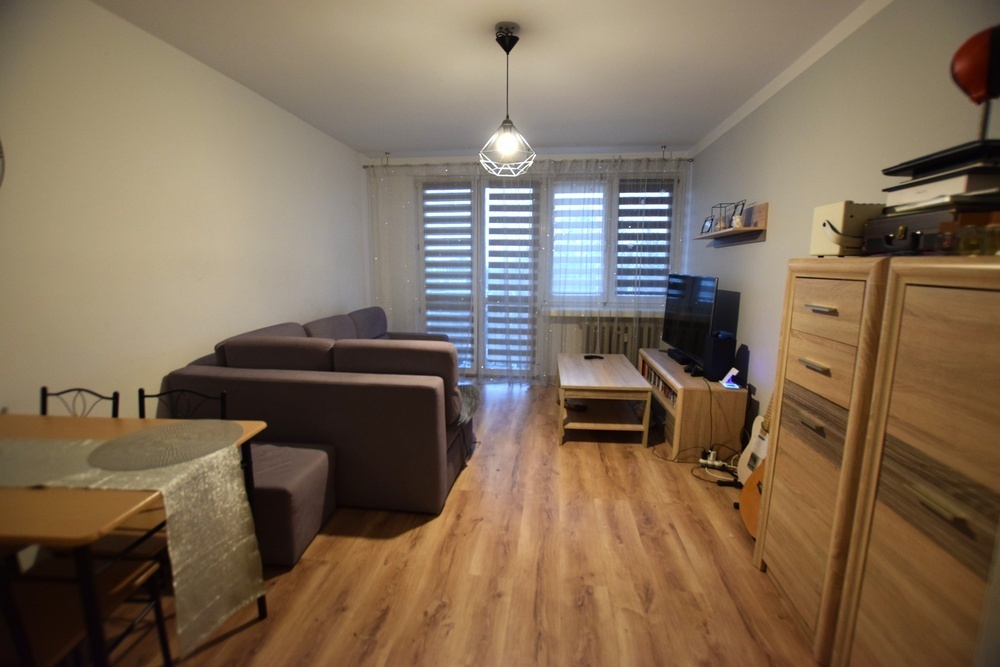 Dwupokojowe mieszkanie 48m2 znajdujące się na czwartym piętrze w czteropiętrowym budynku z 1980 roku.