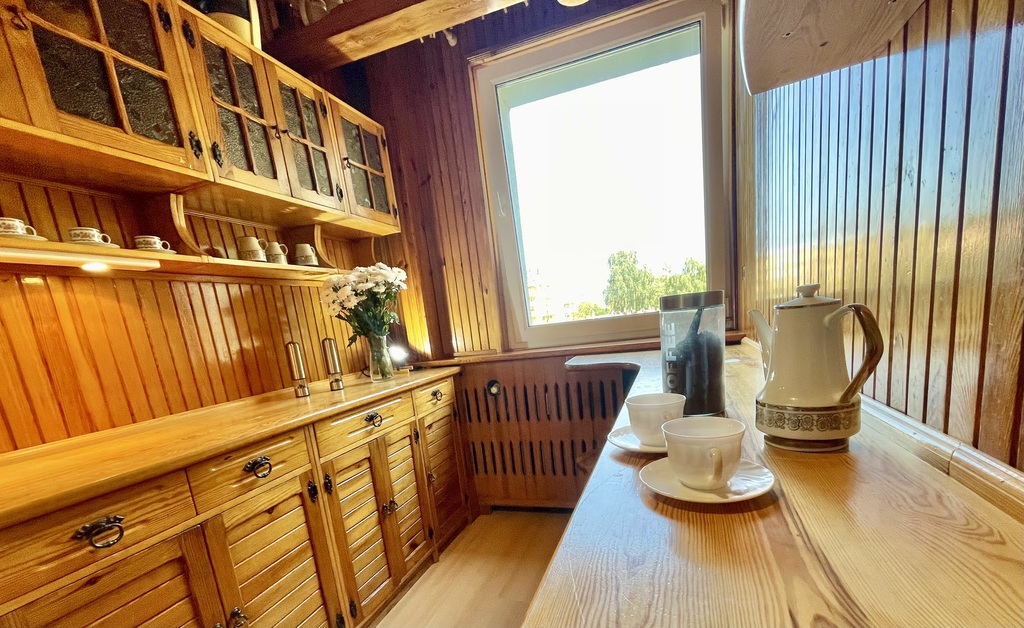 - Oddzielna, jasna kuchnia, wyposażona w podstawowe sprzęty AGD.
