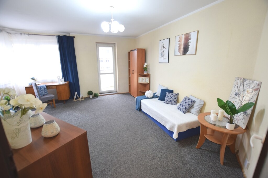 - salon z wyjściem na balkon;