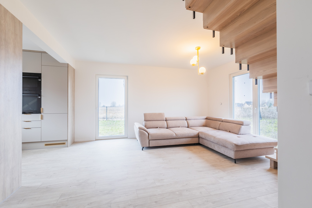 - Nowoczesne rozwiązania - Dom posiada wiele ułatwiających życie technologii - instalację fotowoltaiczną 4kW na dachu, od południowej, nasłonecznionej strony, elektryczne ogrzewanie podłogowe z termostatem w każdym pomieszczeniu, magazyn energii, stację uzdatniania wody z systemem filtracji, przydomową oczyszczalnię, rekuperację. Poprowadzone instalacje pozwalają zamontować alarm, monitoring i dodatkowe oświetlenia. Działka o powierzchni 893 m2 wyposażona jest w system automatycznego nawadniania.