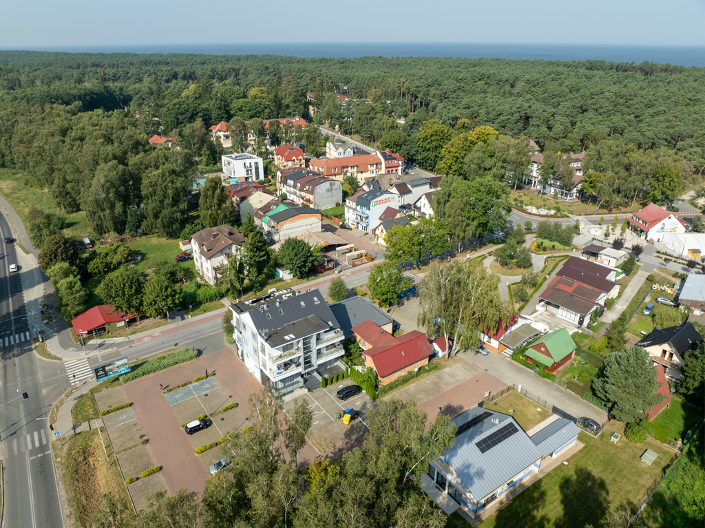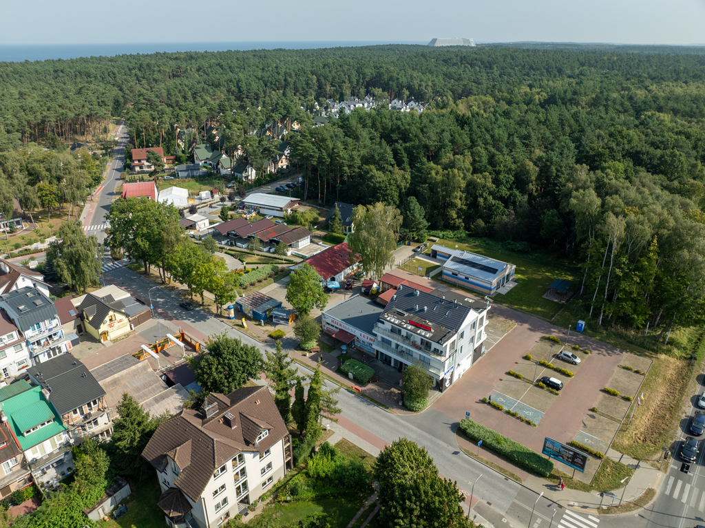 Wokół zagospodarowany teren oraz pełna infrastruktura (parking, restauracje, kawiarnie, domki letniskowe ).