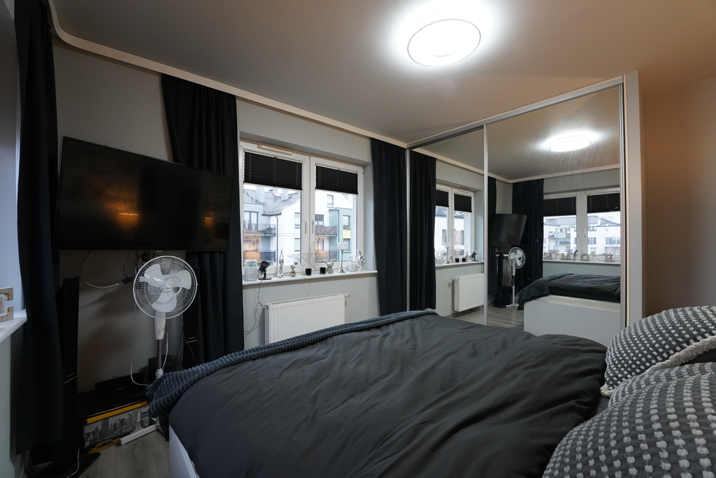 Nieruchomość wyposażona w dużą ilość szaf w zabudowie, dzięki czemu oszczędzamy na przestrzeni. Szafy znajdują się w korytarzu, sypialniach, łazience, a także w salonie.