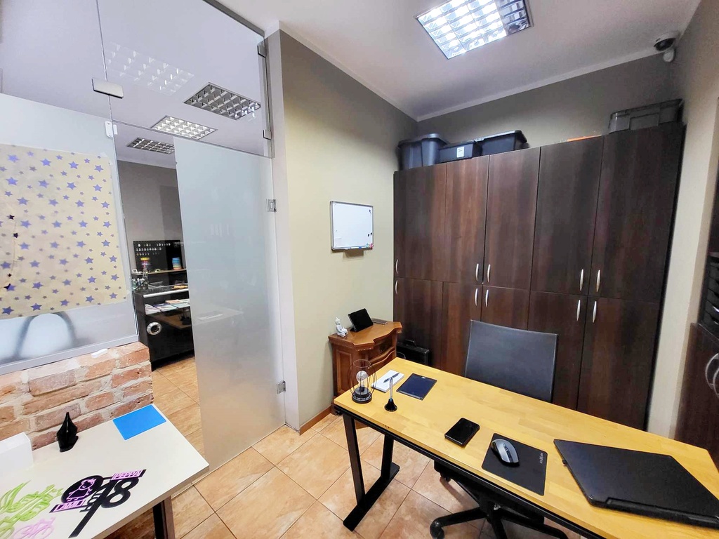 - oddzielnego gabinetu o metrażu 2,1 m x 4,8 m oddzielonego od sali głównej szklaną ścianą.