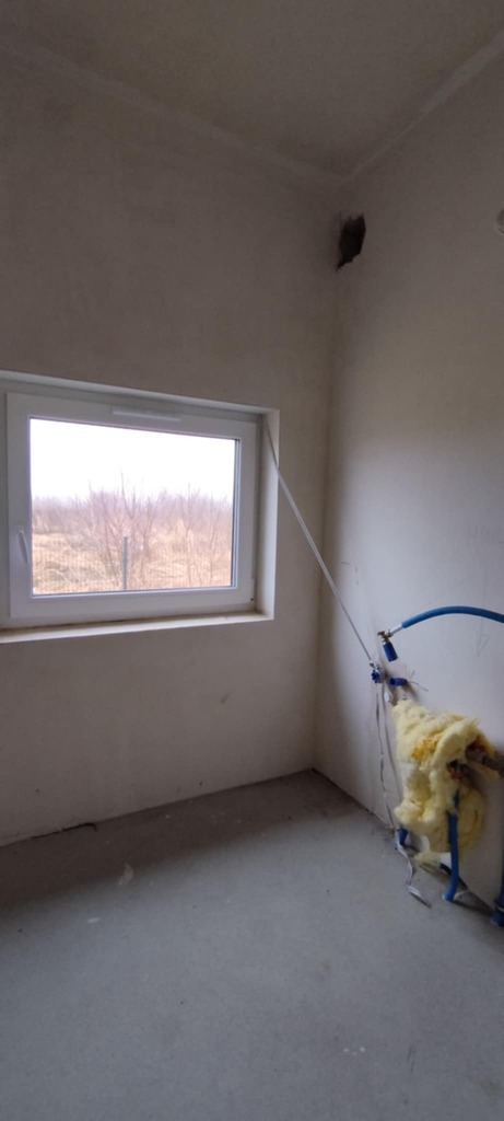 Dom w stanie deweloperskim wyposażony w piec gazowy, elewacja docieplona 18 cm styropianem grafitowym, co zapewnia optymalne izolowanie termiczne.